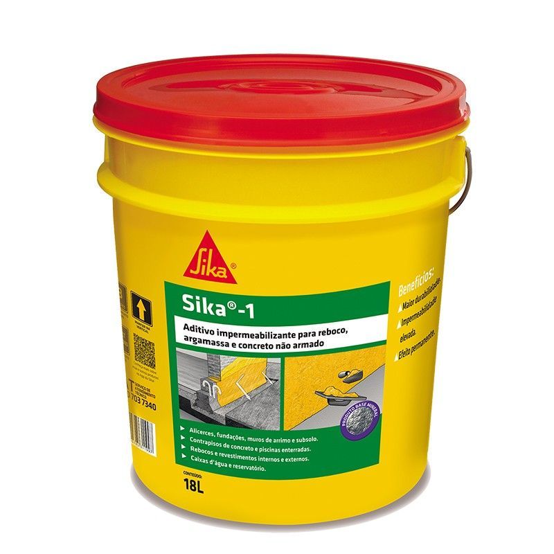Descrição: Sika® 1 É Um Impermeabilizante De Pega Normal Para Argamassa E Concreto, Que Reage Com O Cimento Durante O Processo De Hidratação, Dando Origem A Substâncias Minerais Que Bloqueiam A Rede Capilar, Proporcionando Elevada Impermeabilidade À Argamassa E Concreto. Usos - Rebocos Internos E Externos. -Revestimentos Impermeáveis Em: Subsolos, Fundações, Pisos E Paredes Em Contato Com Umidade Do Solo, Piscinas, Reservatórios E Caixas De Água, Túneis E Galerias. ? Muros De Arrimo. Argamassa De Assentamento De Blocos E Tijolos Para Evitar Umidade Ascendente ?Concreto Impermeável Produto: Aditivo Impermeabilizante Uso Do Impermeabilizante: Paredes E Pisos Cor: Branco Marca: Sika
